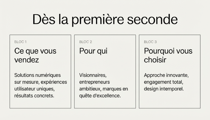 Lorsque l’internaute arrive sur votre site, il doit comprendre immédiatement :