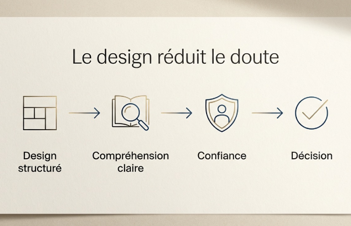 Le contenu est essentiel, mais le design crée la première impression. Sans confiance initiale, le contenu ne sera pas lu.